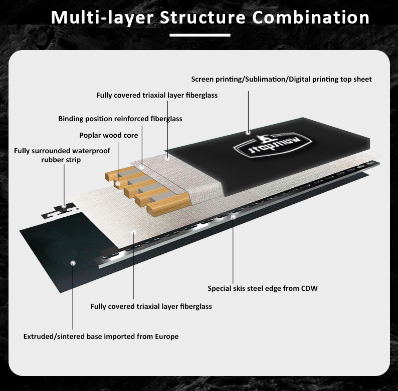 The reinforcement layer of alpine skis (Ski) is one of the key structural components that determines the performance, durability, stability, and elasticity of the skis. It is usually located between the top sheet and the core or on both sides of the core.Different brands and product categories use different materials and manufacturing techniques for their reinforcement layers.